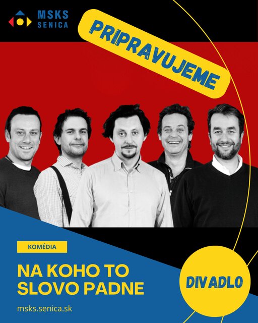 Jedna z najúspešnejších slovenských divadelných hier postavená na pätici oduševnených výkonov prichádza na naše pódium! Lukáš Latinák, Juraj Kemka, Marián Miezga, Róbert Jakab a Vladimír Kobielsky sa predstavia v grotesknom príbehu piatich indivíduí uzavretých v jednej miestnosti v spoločnosti jedného revolvera. Kto ho má, ten má moc. Avšak každý má o nej svoju vlastnú predstavu. Predstavenie, ktoré sa môže pýšiť cenou DOSKY ako Objav sezóny, vypáli jeden gag za druhým, až kým nepadneme od smiechu.