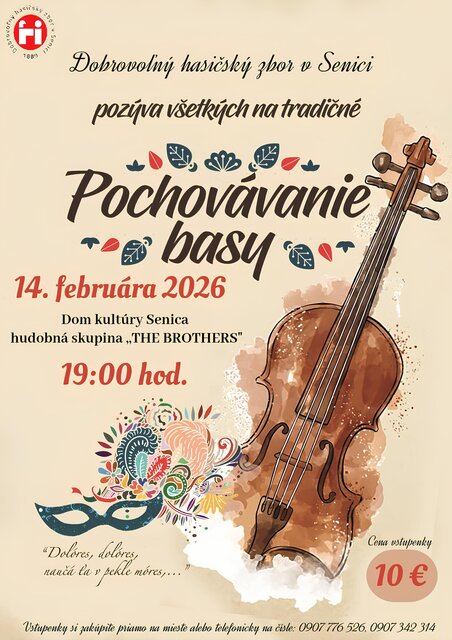 Dobrovoľný hasičský zbor v Senici Vás srdečne pozýva na tradičnú fašiangovú zábavu. Príďte sa zabaviť, zatancovať a rozlúčiť s basou vo veľkom štýle 14. 2. o 19:00.