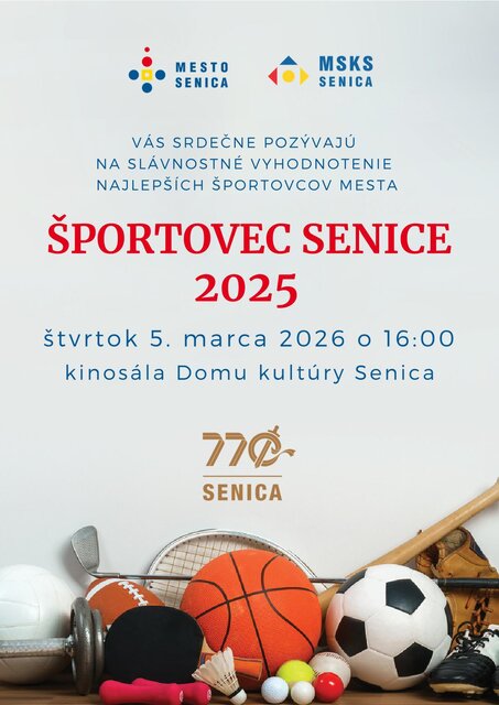 Mesto Senica a Mestské kultúrne stredisko Senica Vás srdečne pozývajú na slávnostné ocenenie ŠPORTOVEC ROKA 2025.